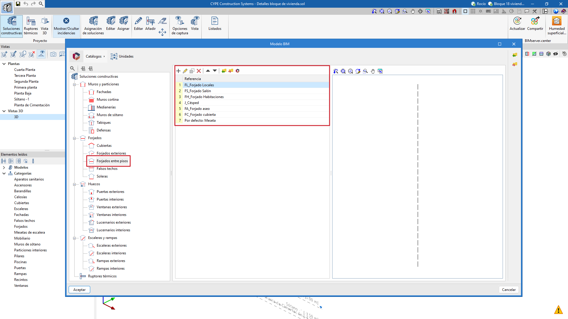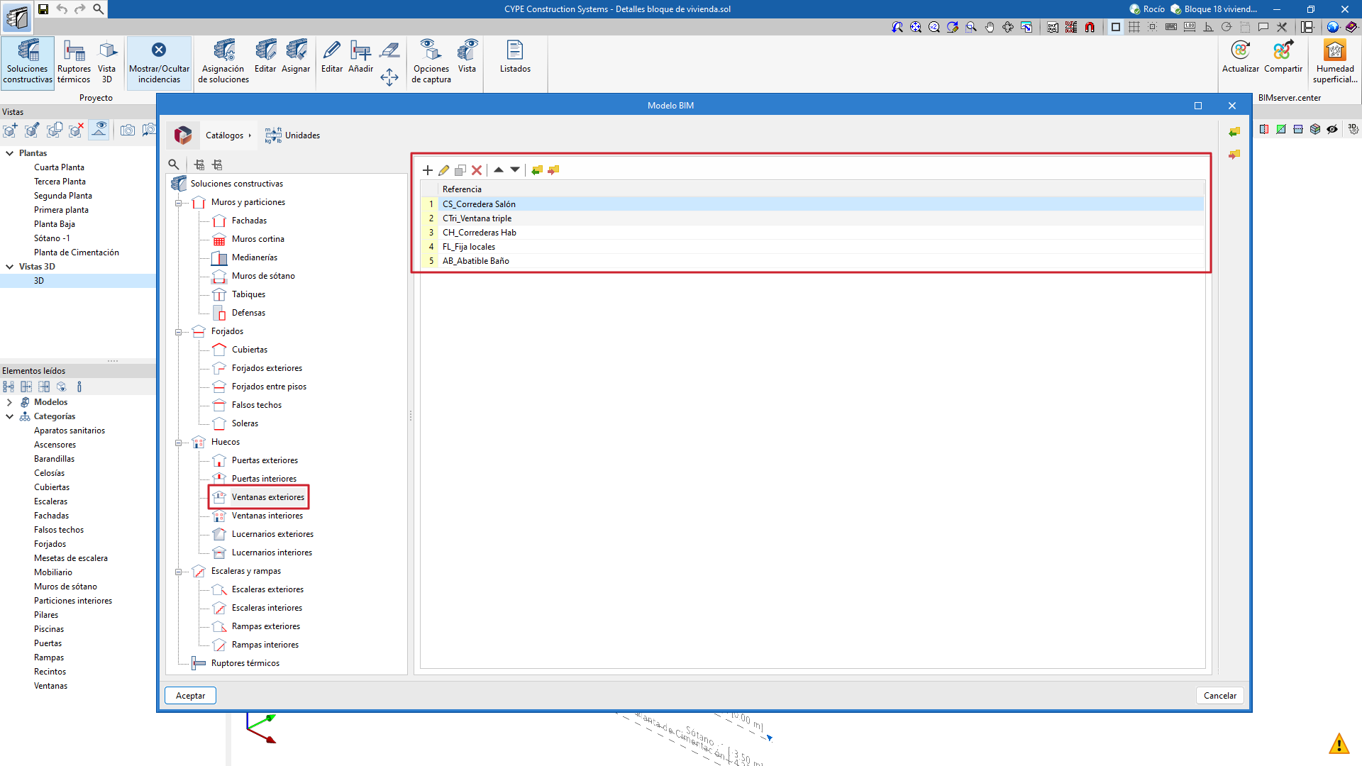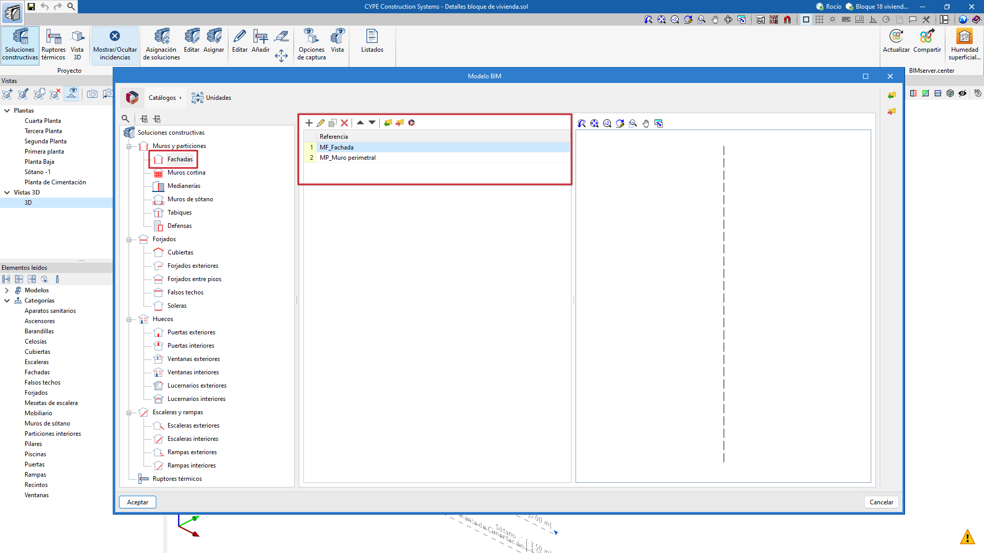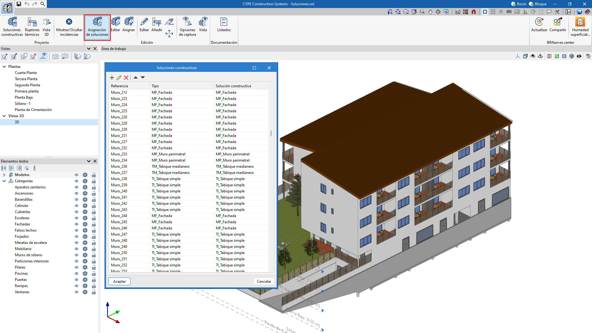 El trabajo con CYPE Construction Systems comienza con la definición de las distintas soluciones constructivas a emplear en el modelo. Cuando se importa un modelo arquitectónico en formato IFC con los tipos de tipologías asignadas a los elementos constructivos crea, de forma automática, referencias de soluciones constructivas en CYPE Construction Systems.