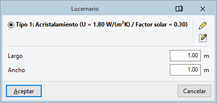 Los parámetros necesarios en la configuración manual de un tipo de lucernario son los siguientes: