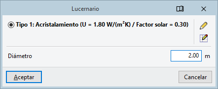 La introducción de un tipo de lucernario (ya sea rectangular, circular o poligonal) se realiza de forma manual o editable. De esta manera, el usuario especifica directamente los parámetros que describen el tipo de lucernario, incluyendo los datos necesarios para los diferentes cálculos realizados por el programa.