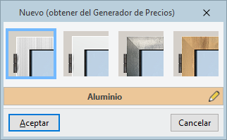 Introducción de carpinterías del Generador de precios