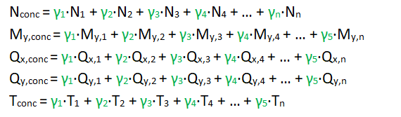 Los esfuerzos concomitantes con dicho momento máximo se obtienen combinando linealmente el resto de esfuerzos utilizando los coeficientes calculados para el momento (γ1, γ2, γ3, γ4,…, γ5):