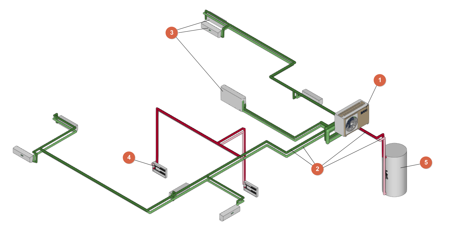 Instalación de aerotermia monobloc para climatización (por fancoils y suelo radiante) y ACS