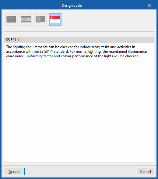 Permite importar los requisitos de alumbrado exigidos por la norma SS 531-1.