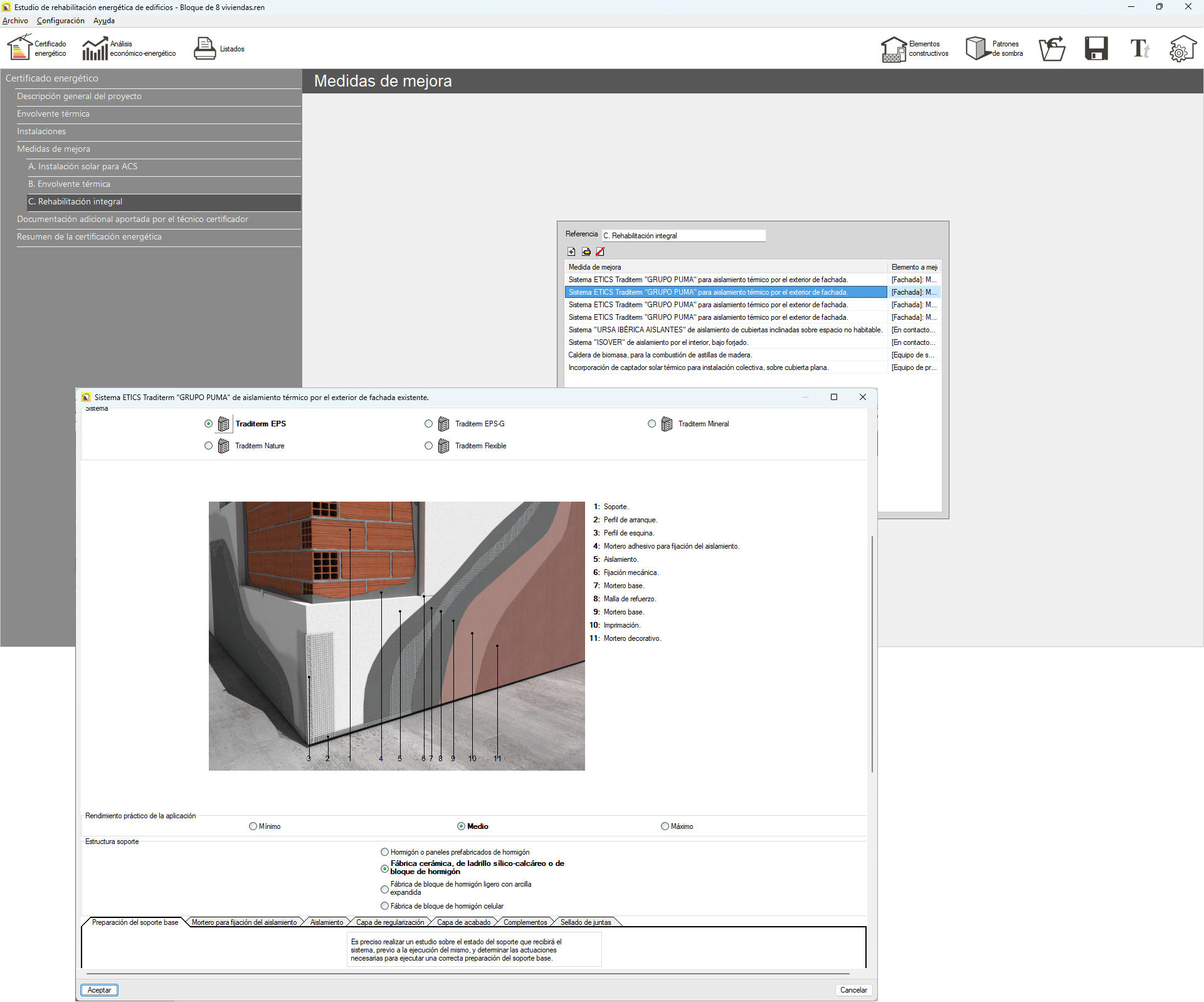 Con el programa Estudio de rehabilitación energética de edificios se obtiene una documentación detallada, actualizada y completa, referida en todo momento a los diferentes sistemas que las casas comerciales presentan en el mercado español, para el cumplimiento de la normativa vigente sobre la rehabilitación energética de edificios.