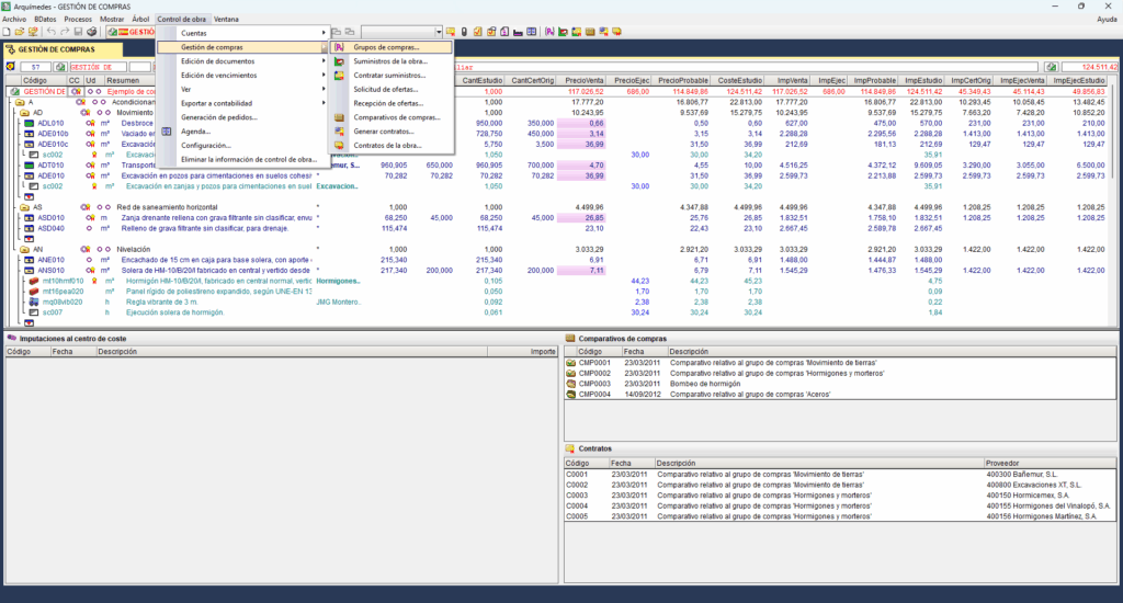 El módulo "Gestión de compras" de Arquímedes permite calcular los suministros necesarios para ejecutar una obra y prever la facturación de proveedores y subcontratistas.