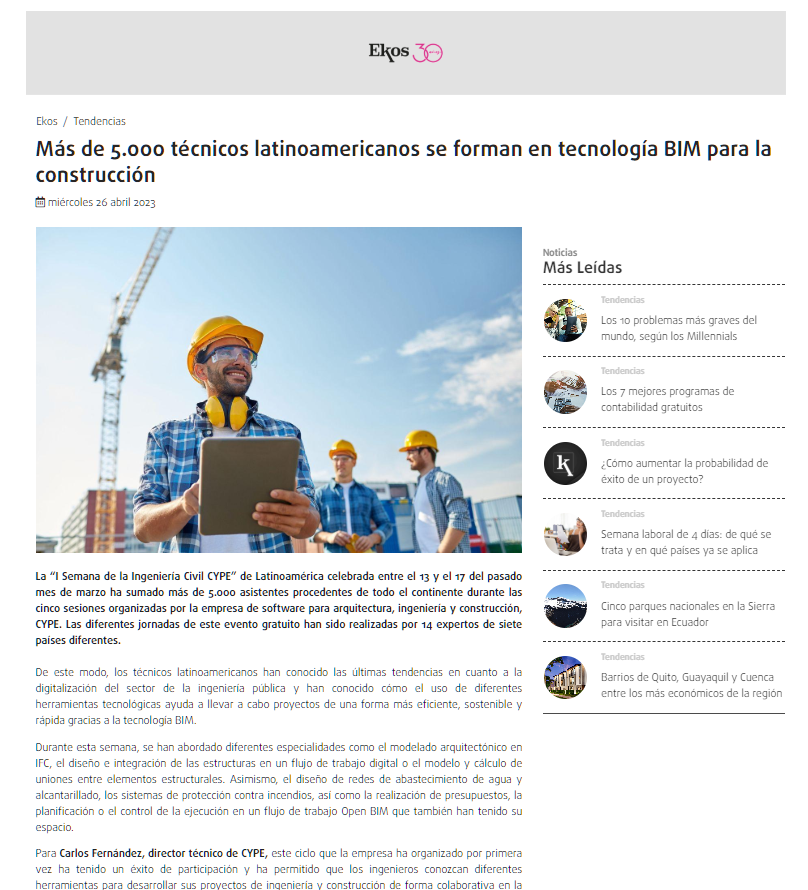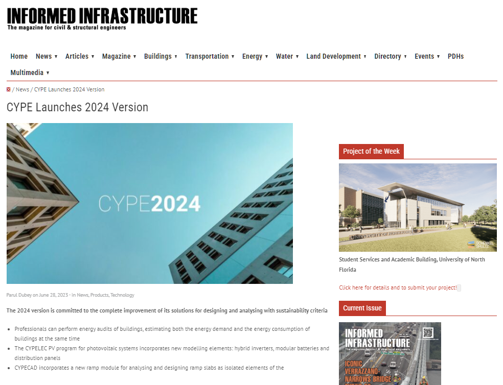 Dans cette section, vous trouverez une compilation d'actualités intéressantes concernant le monde des logiciels techniques pour le secteur AEC, des articles de vulgarisation ou de recherche et tout ce qui a trait à CYPE et à ses activités.