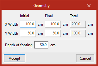 - Dans le cas d'un ‘Dimensionnement rapide complet’, le dimensionnement de tous les éléments de la fondation est effectué en une seule fois, sans respecter la géométrie introduite par l'utilisateur.