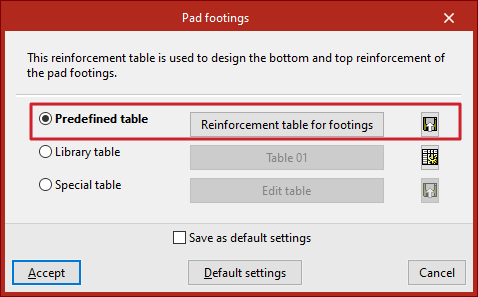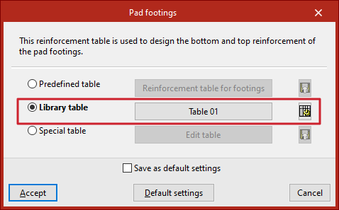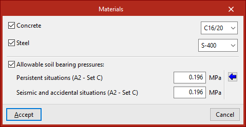 Tout d'abord, définissez les données correspondant aux matériaux des éléments de la fondation :