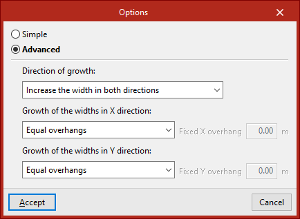 Tout d'abord, il est possible de modifier l’augmentation de largeur et l’augmentation d'épaisseur que le logiciel utilise pour chaque direction dans les itérations successives du dimensionnement.