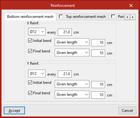 Pour chacun d'entre eux, il est possible d'indiquer une valeur pour l'enrobage ‘Supérieur’, ‘Inférieur’ et ‘Latéral’.