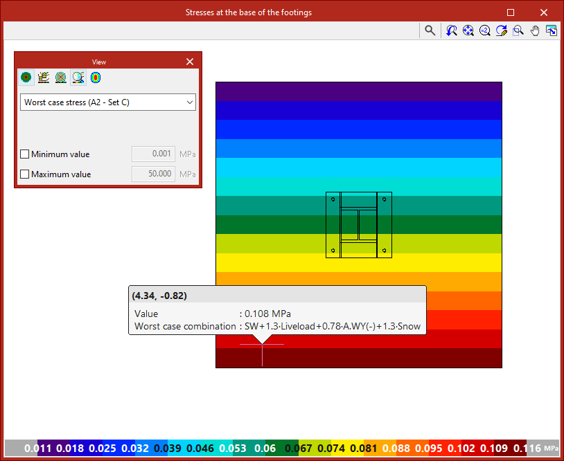 Ensuite, renseignez les valeurs des contraintes admissibles du terrain tant pour les ‘Situations durables’ que pour les ‘Situations sismiques et accidentelles’, également appelées contraintes de calcul dans certaines normes.