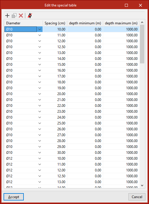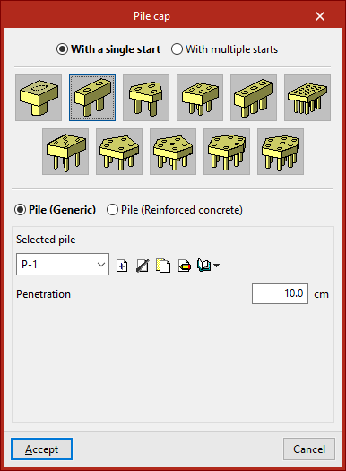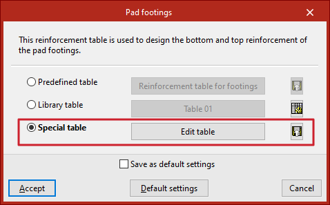 Ceux-ci peuvent être différents pour les ‘Semelles superficielles et sur pieux’ et pour les ‘Poutres de redressement et de liaison’.