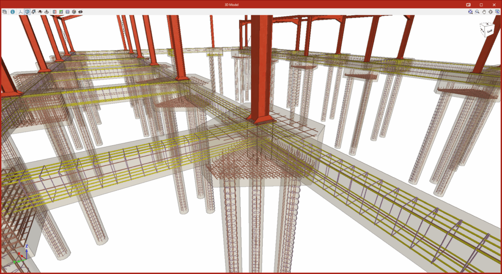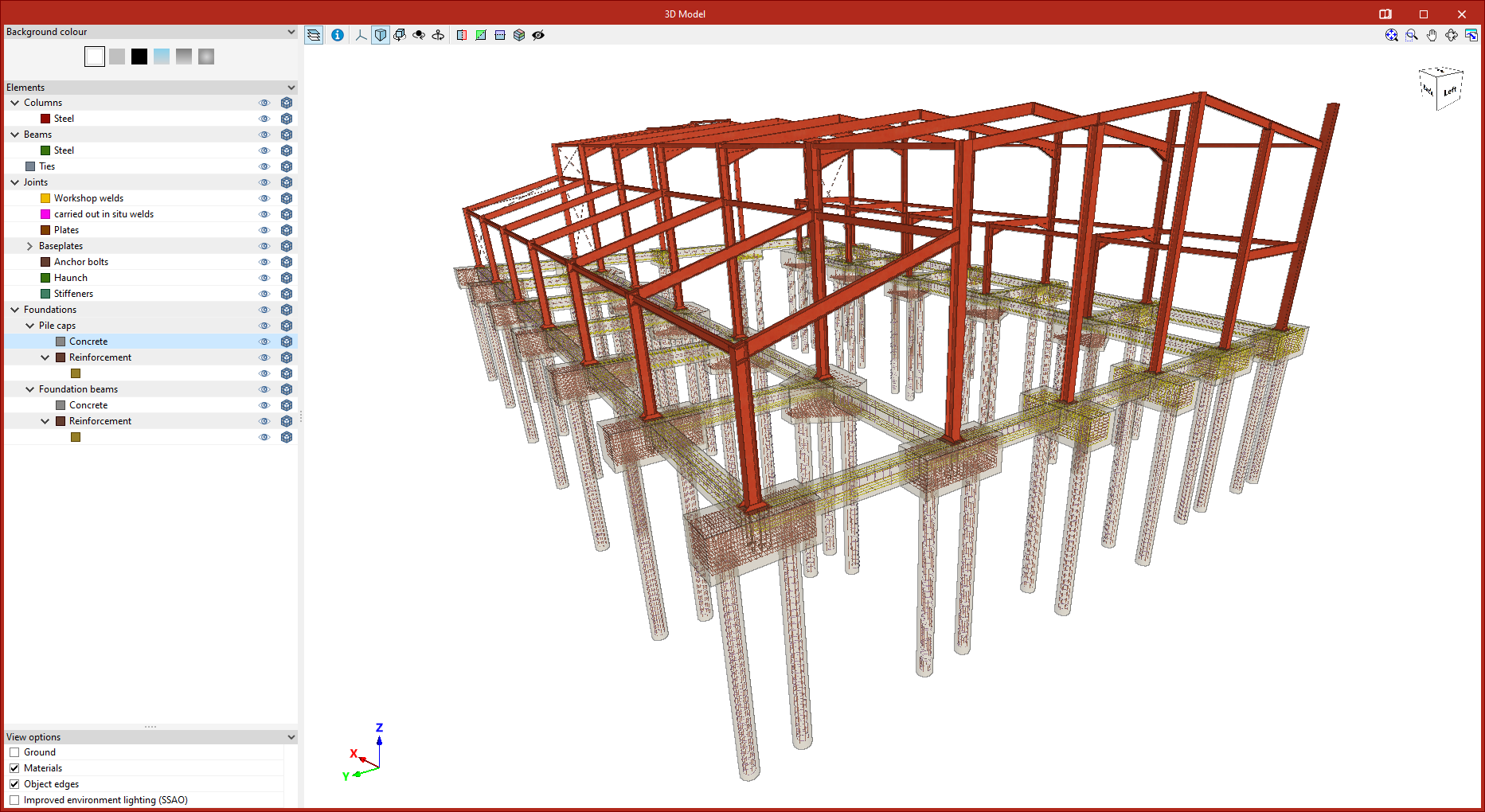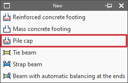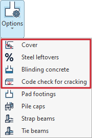 - Dans le bloc ‘Éléments de fondation’, les options pour introduire les éléments de fondation (semelles superficielles et sur pieux, poutres de liaison et de redressement), ainsi que les options pour les éditer et les ajuster ;