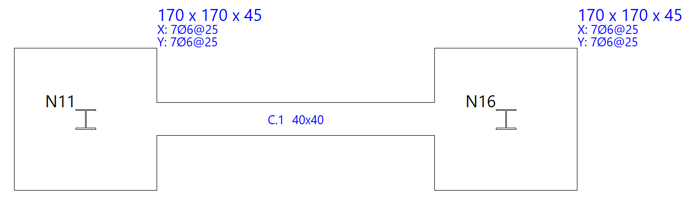 Les limites n'ont aucun effet sur les poutres de liaison, les poutres de redressement, les semelles sur pieux ou les semelles pyramidales.