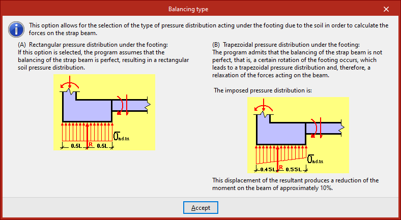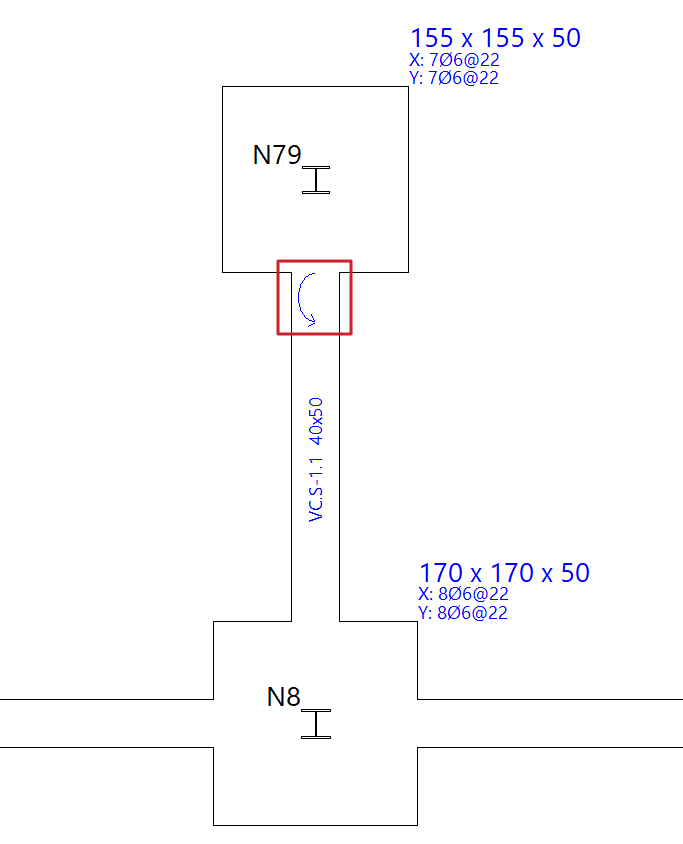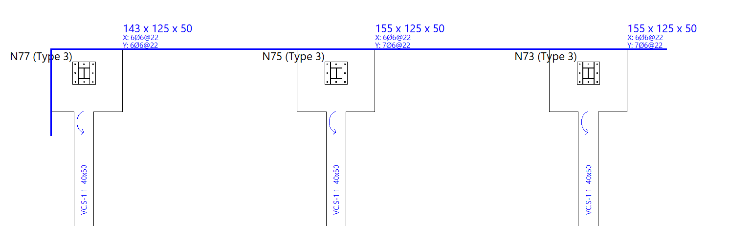 - Enfin, si l'option ‘Dimensionnement itératif’ est sélectionnée, le dimensionnement de tous les éléments de la fondation est effectué en trois itérations, car si la rigidité d'une poutre de redressement change, cela influe sur le calcul des semelles auxquelles elle est liée.
