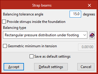 Dans la fenêtre qui s'affiche, les cases ‘Éléments de fondation’, ‘Poutres de redressement’ et ‘Poutres de liaison’ peuvent être sélectionnées pour définir les éléments à dimensionner.