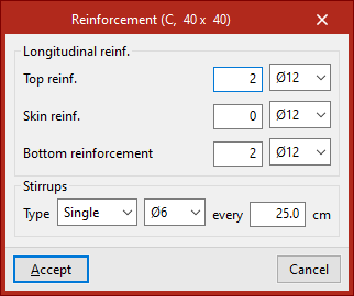 En cochant la case correspondante, vous pouvez modifier la valeur normative des ‘Minimums géométriques d'armature’ nécessaires pour résister à la flexion. Ces valeurs sont utilisées uniquement dans le dimensionnement, et non dans la vérification.