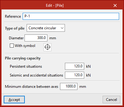 Dans la section ‘Pieux (béton armé)’, vous pouvez configurer les options et données suivantes relatives au calcul des pieux en béton armé :