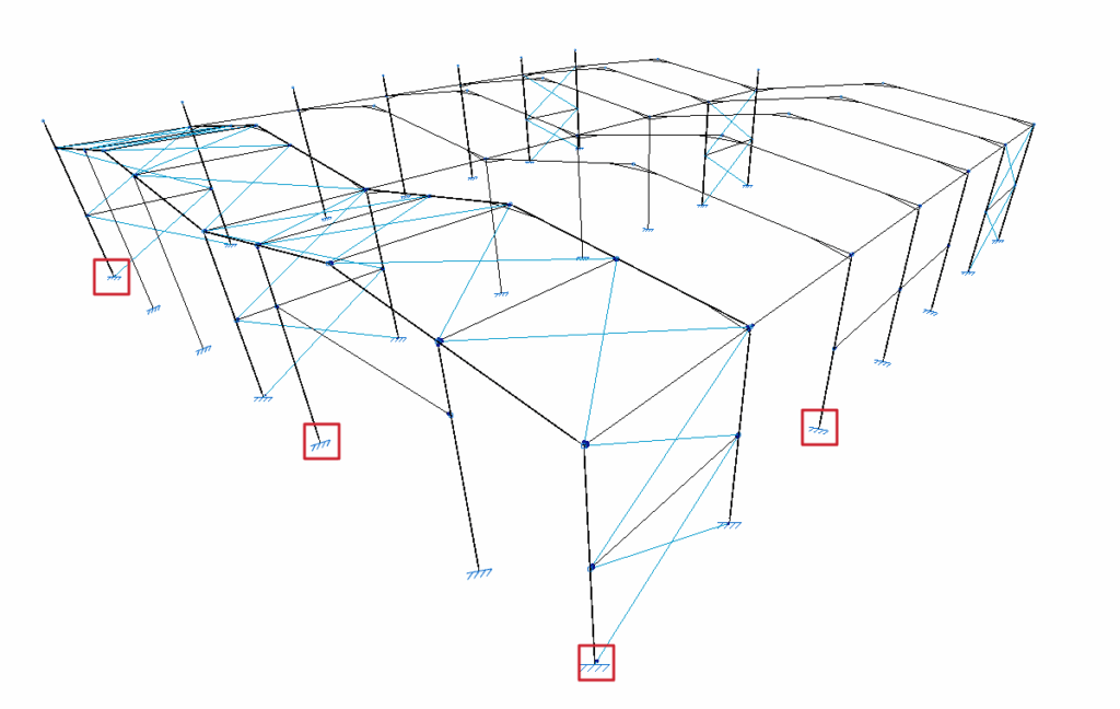 Celles de la deuxième ligne constituent des appuis avec déplacement libre et maintiennent les rotations sans contrainte :