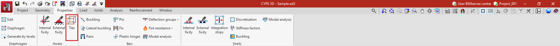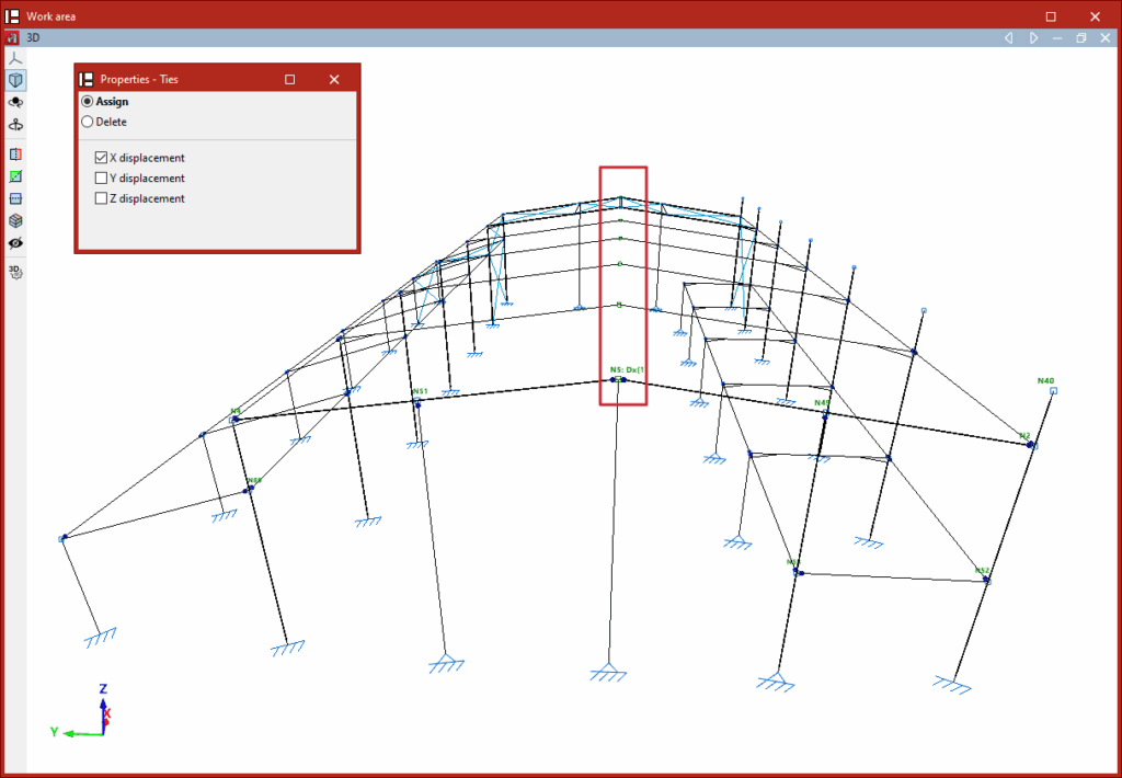 Les liaisons extérieures dans les nœuds de la structure sont définies avec l'option suivante, disponible dans le bloc ‘Nœuds’ de la barre d'outils supérieure, dans l'onglet supérieur ‘Propriétés’ (accessible à partir de l'onglet inférieur ‘Structure’).