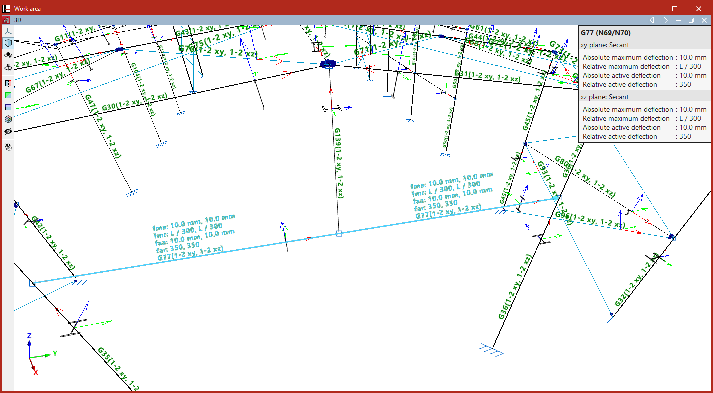 S'ils sont définis comme ‘Indépendants’, le comportement des déplacements sur les trois axes Dx, Dy et Dz est spécifié :