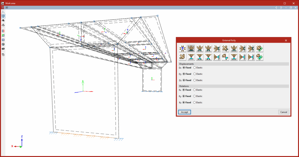 Chaque déplacement empêché doit être défini comme ‘Fixe’ ou ‘Élastique’.
