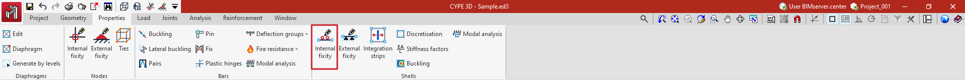 Les liaisons intérieures dans les nœuds de la structure sont définies avec l'option suivante, disponible dans le bloc ‘Nœuds’ de la barre d'outils supérieure, dans l'onglet supérieur ‘Propriétés’ (accessible à partir de l'onglet inférieur ‘Structure’).