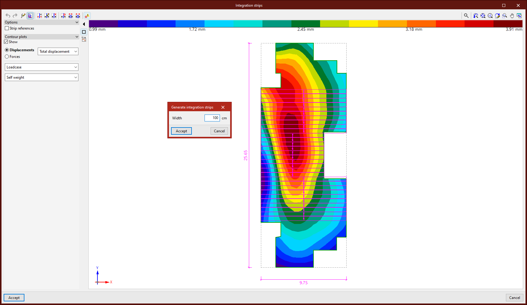 La création de bandes d'intégration permet de consulter les efforts dans chaque bande comme s'il s'agissait des efforts sur une barre de la structure.