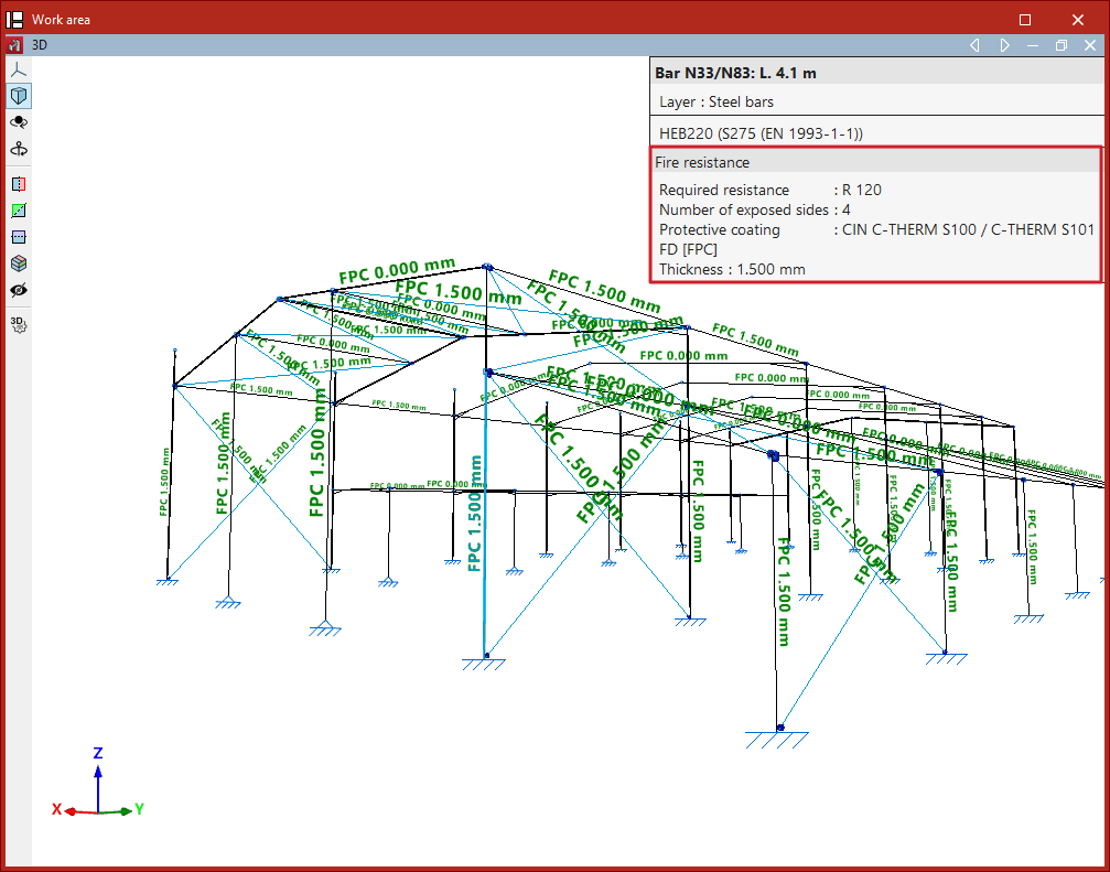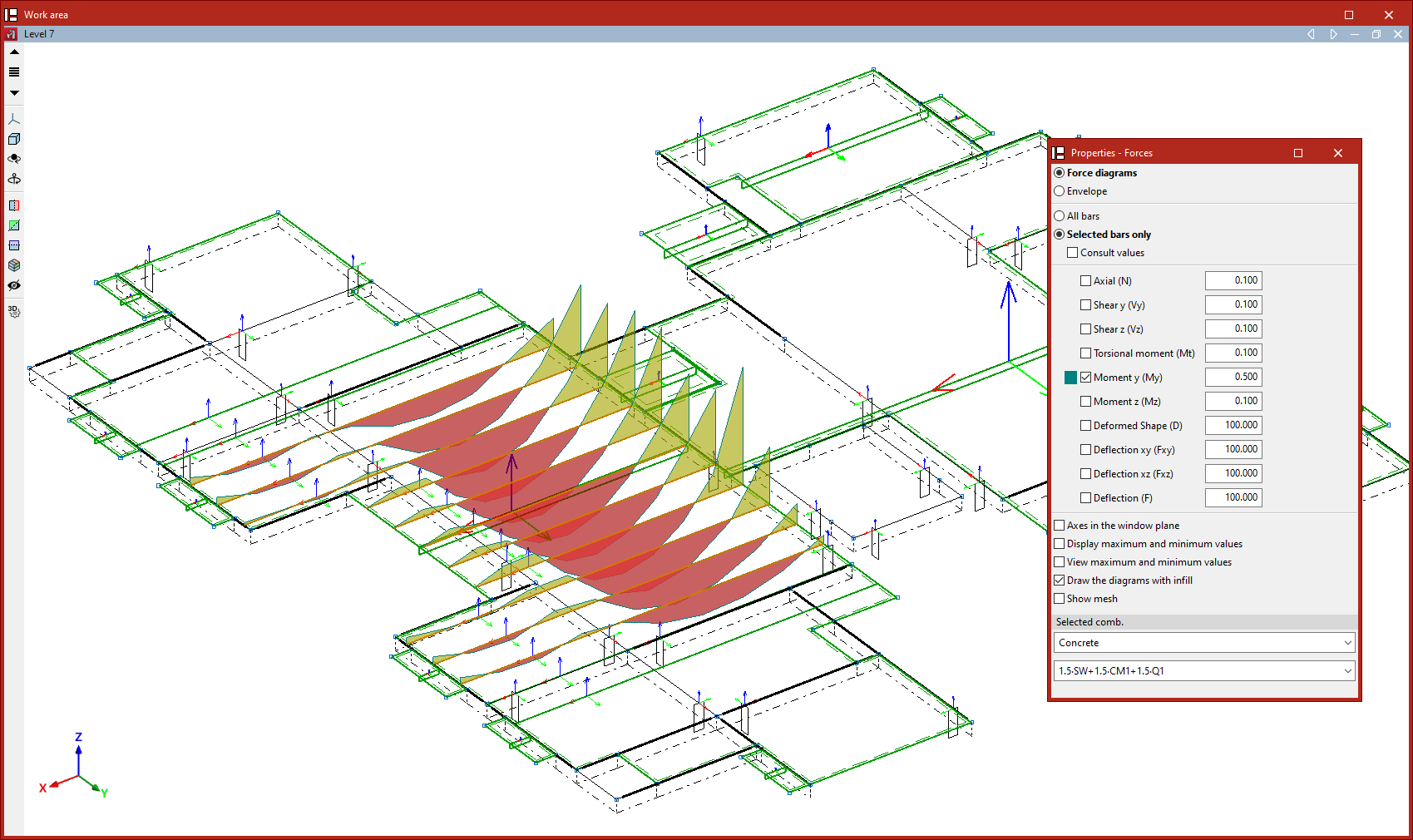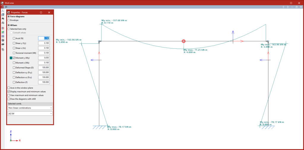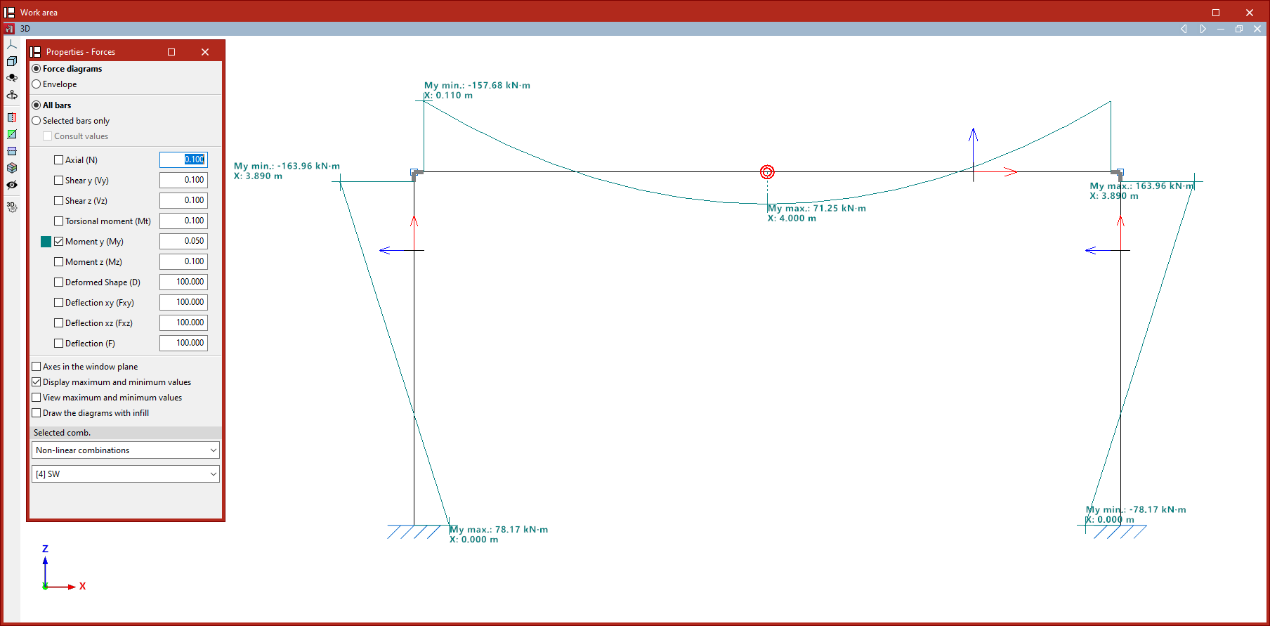 Pour ce faire, après avoir effectué le calcul de la structure, utilisez l'option ‘Efforts’ du bloc ‘Contrainte / Déformation’ dans l'onglet ‘Calcul’.