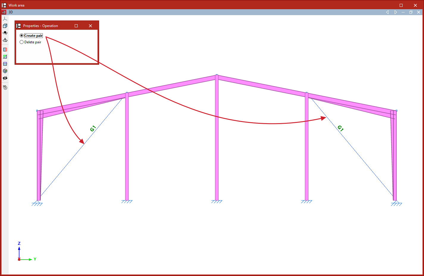 Permet d'insérer une liaison intérieure. Les liaisons intérieures sont celles qui relient les extrémités des barres qui arrivent à un même nœud.