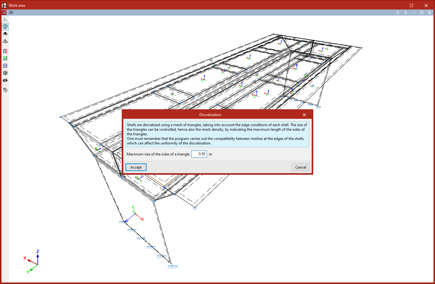 Les plaques sont discrétisées à l'aide d'un maillage triangulaire ; en outre, le logiciel tient compte des conditions aux limites de chaque plaque.