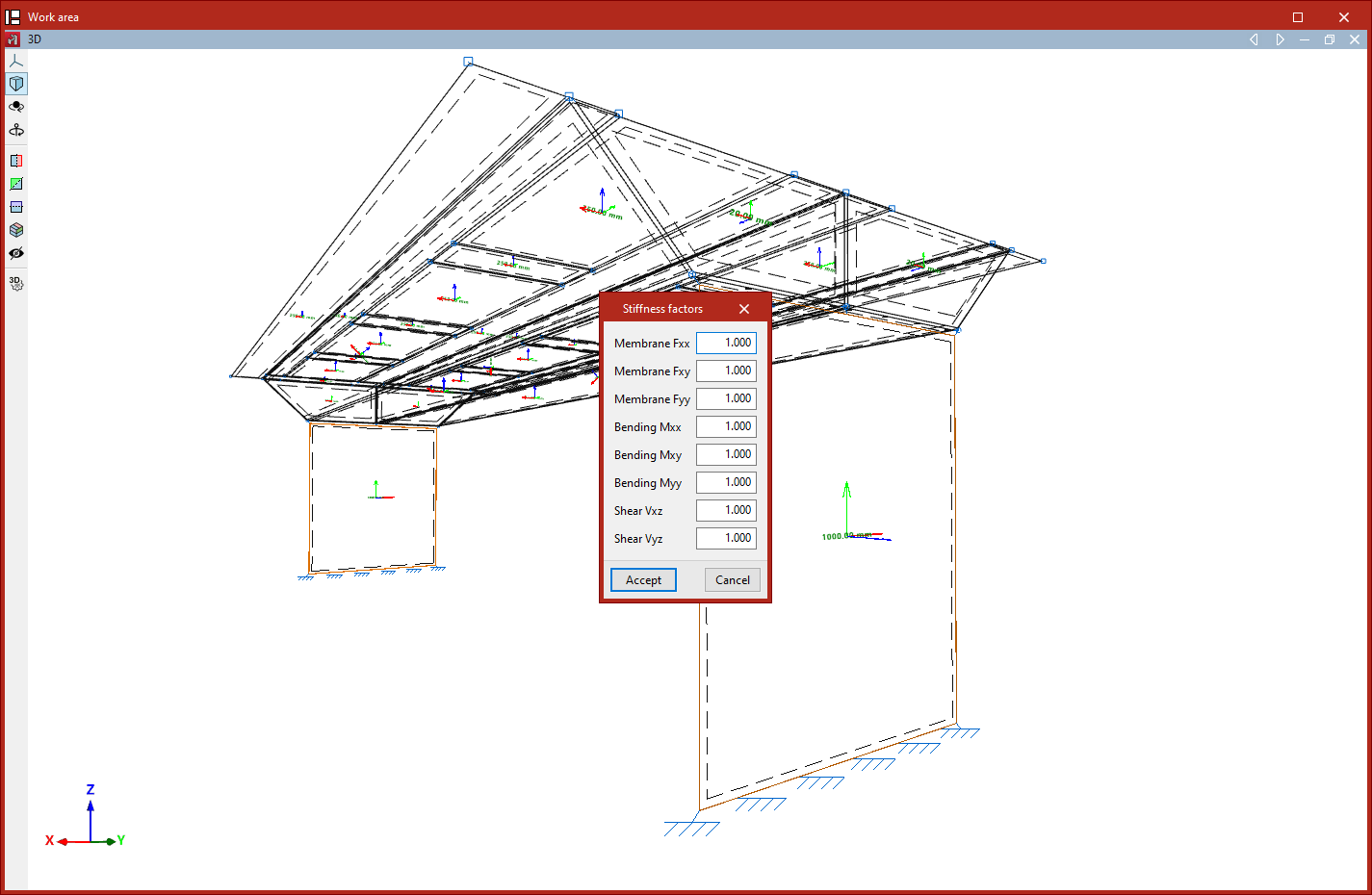 Dans la fenêtre qui s'affiche, ces facteurs permettent de modifier la rigidité à l'effort normal, la rigidité à l’effort tranchant et la rigidité en flexion sur les différents axes locaux de la plaque :