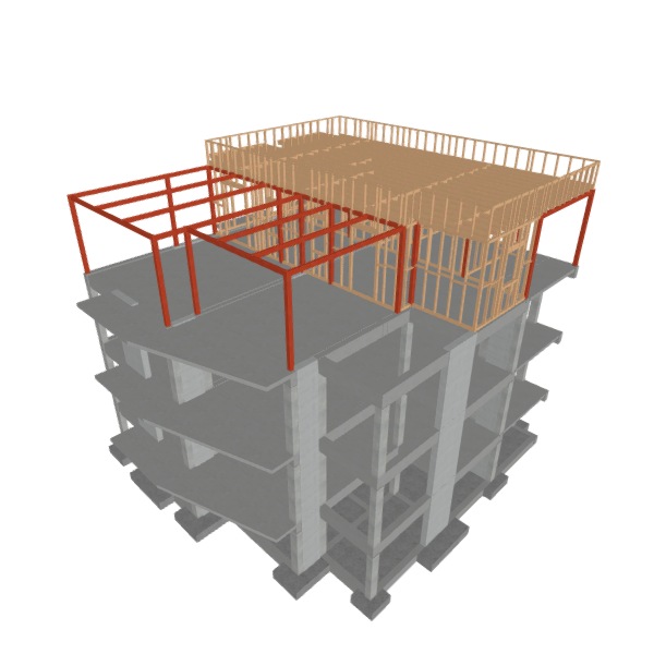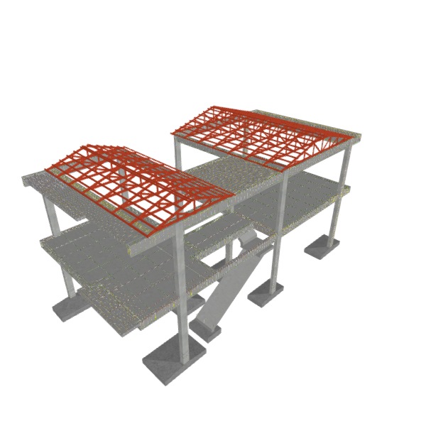 De plus, grâce à l'intégration de CYPE 3D, il est capable de résoudre des structures mixtes, constituées de zones à géométrie libre, généralement résolues avec une structure métallique ou en bois (telles que des toitures inclinées, des fermes ou des sous-structures métalliques) associées à des zones organisées en niveaux, généralement résolues avec des structures en béton (systèmes de portiques ou de murs, et planchers).