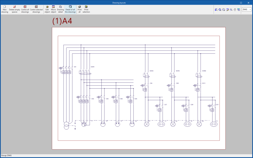Le logiciel présente un environnement de travail simple qui permet de concevoir rapidement le schéma unifilaire, en introduisant et en distribuant les éléments sur différents plans dans les formats souhaités.