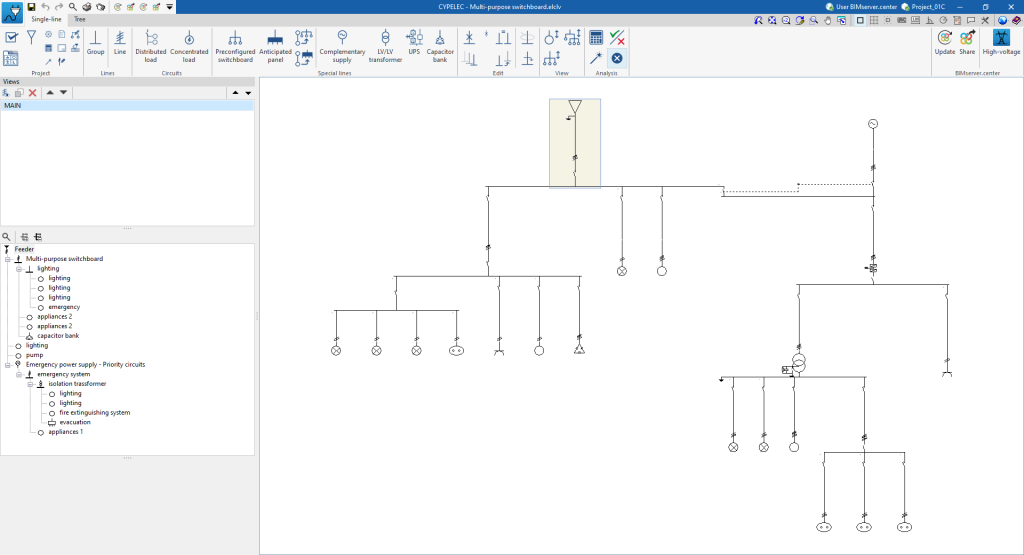 - Exportation des informations générées avec CYPELEC MULTILINE vers la plateforme BIMserver.center. Cela permet aux intervenants autorisés du projet de les visualiser.