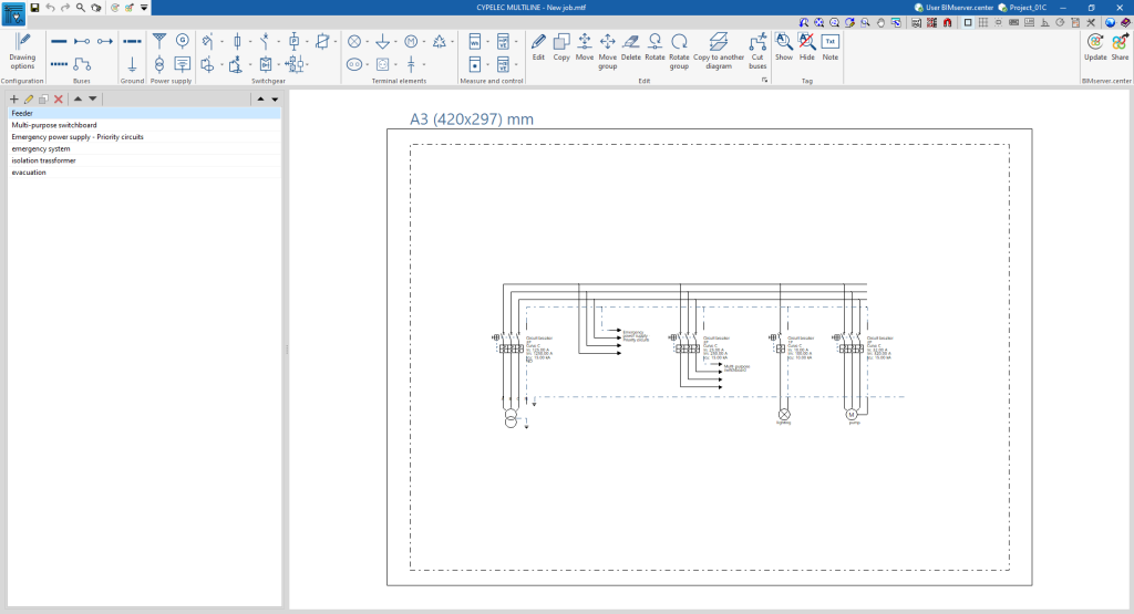 CYPELEC MULTILINE est un logiciel qui permet de dessiner le schéma unifilaire d'une installation électrique et de l'imprimer sur des plans de différents formats.