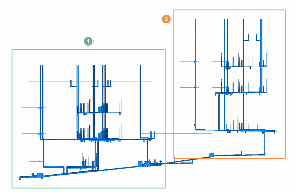 - (Optionnel) Génération des raccords tels que des coudes ou des tés aux assemblages de tuyauteries (depuis ‘Points de contrôle et de visite’, ‘Raccords’).