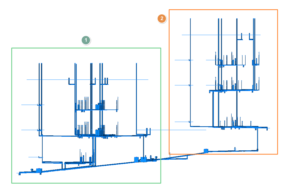 - (Optionnel) Liaison à BIMserver.center et importation du modèle géométrique, définition de la configuration et des normes applicables, importation des catalogues et génération des consommations et des raccordements des équipements sanitaires lus à partir du modèle BIM.