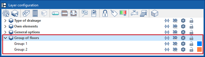 Dans 'Configuration', il est possible de configurer les formats de papier et les types de tableaux disponibles et, dans 'Options de dessin', la représentation graphique des éléments des schémas d'installation d'évacuation des eaux, en définissant leur couleur et leur symbole.
