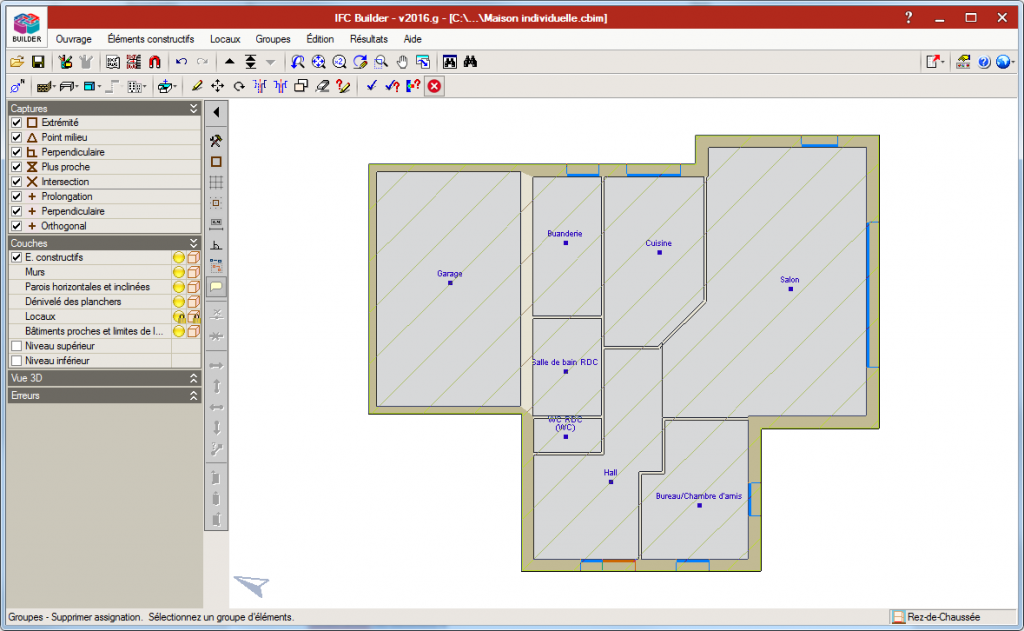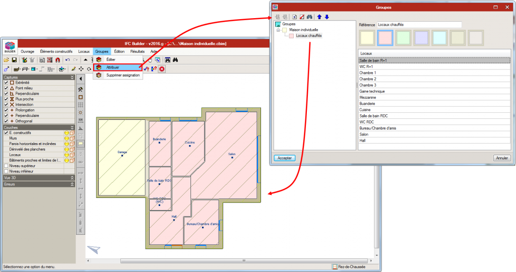 Após definir os compartimentos do edifício, estes podem-se agrupar de acordo com as suas características. Por exemplo, para a análise térmica de um edifício multifamiliar os grupos da obra podem ser: zonas não úteis, zonas comuns, apartamento1A, apartamento1B, apartamento2A, etc.