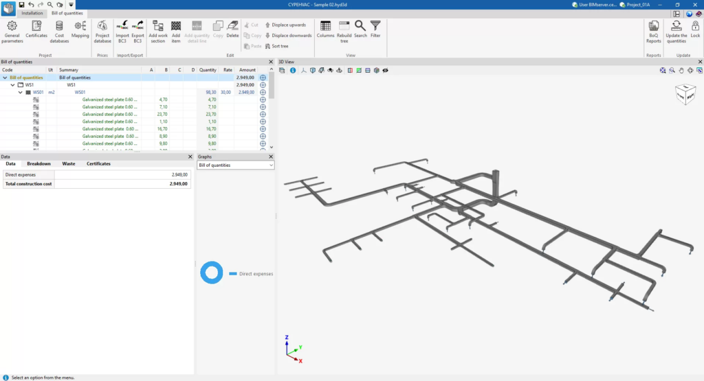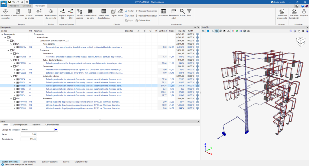 Certaines applications CYPE intégrées dans le flux Open BIM qui disposent de l'onglet ‘Estimatif’ sont, entre autres, CYPEPLUMBING, CYPELEC, CYPEHVAC ou CYPEFIRE.