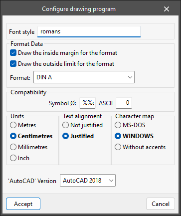 - Version de 'AutoCAD' (AutoCAD 2004 / AutoCAD 2000 / AutoCAD R14 / AutoCAD R13 / AutoCAD R11)