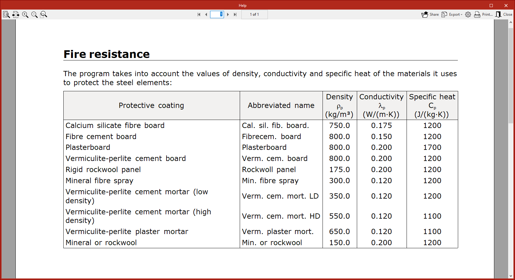 Vous pouvez ainsi consulter un tableau d'aide dans la fenêtre surgissante avec les valeurs 'Densité', 'Conductivité' et 'Chaleur spécifique' des différents revêtements de protection inclus dans le logiciel.