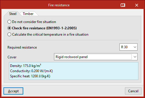 La deuxième permet de ‘Vérifier la résistance au feu’. La norme qui apparaît ici pour le contrôle de la résistance au feu dépend de la norme sélectionnée pour le dimensionnement des éléments structuraux de chaque matériau.