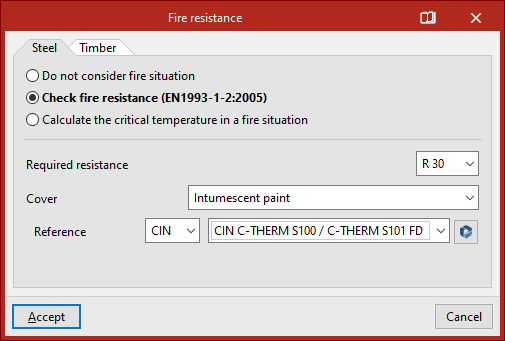 Dans notre cas, le contrôle est disponible pour les éléments en ‘Acier’ et en ‘Bois’. Cette configuration s'appliquera par défaut à tous les éléments de ces matériaux définis dans l'ouvrage.