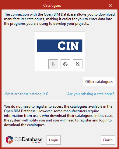 Si vous sélectionnez 'Peinture intumescente' ou 'Mortier intumescente', vous pouvez télécharger les catalogues des fabricants inclus dans Open BIM Database en cliquant sur le bouton à droite.