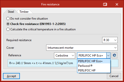Le fonctionnement des peintures et des mortiers intumescents est similaire. Le logiciel dimensionne et vérifie les épaisseurs de revêtement en fonction des informations techniques de chaque produit.