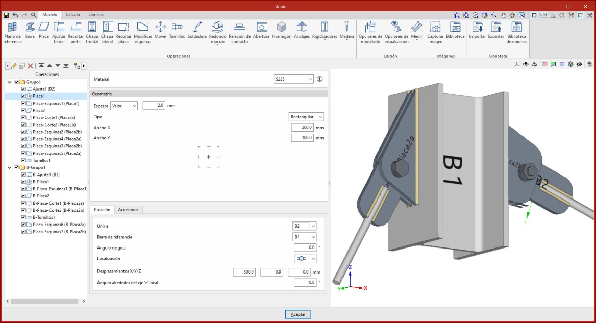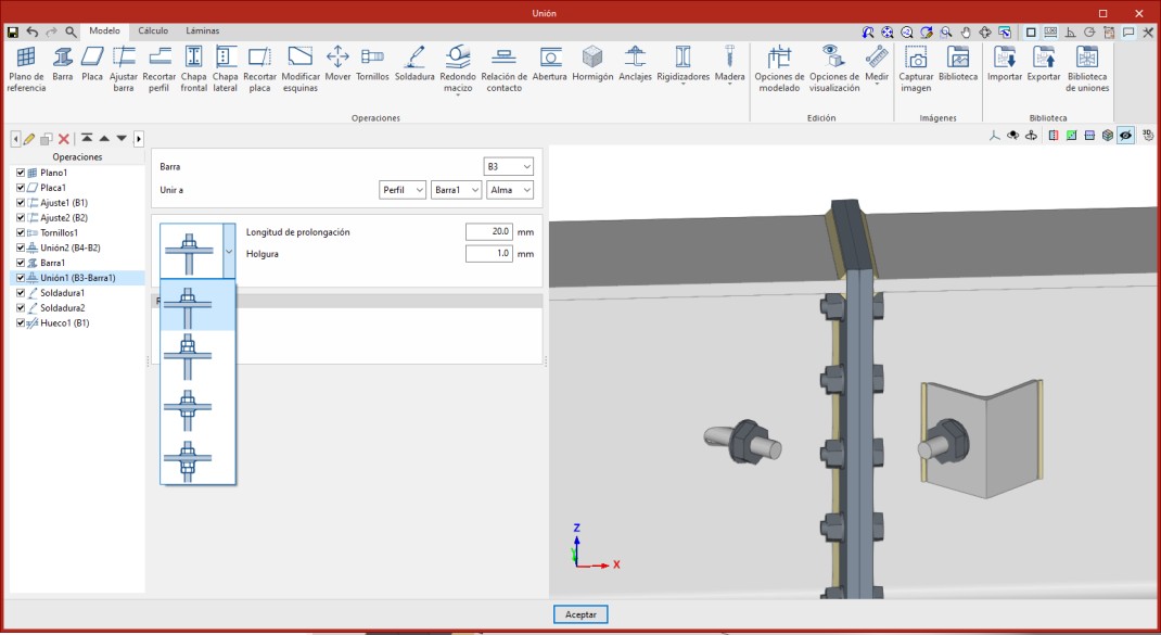 | Les barres sont des éléments linéaires, leur dimensionnement et leur vérification sont donc effectués lors de la conception globale de la structure, dans des logiciels tels que CYPECAD ou CYPE 3D. À partir de StruBIM Steel et CYPE Connect, ce qui est calculé et vérifié est l’assemblage de la barre avec le reste des éléments (plaques, vis, soudures, etc.). |