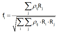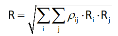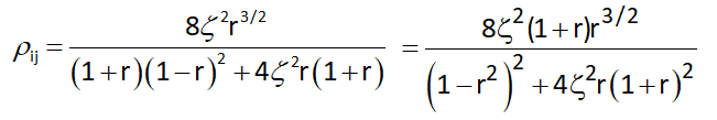 Le coefficient de corrélation ρij tient compte de la distribution des fréquences naturelles de la structure, qu'elles soient bien différenciées ou non. Ce coefficient prend des valeurs comprises entre 0 et 1. Plus les périodes ou les fréquences de deux modes sont proches, c'est-à-dire lorsque r tend vers 1, plus la valeur de ρij tend vers 1. En revanche, la valeur de ρij diminue rapidement lorsque les fréquences s'éloignent l'une de l'autre.