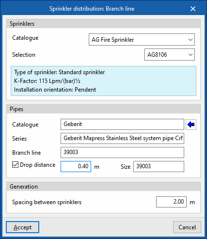 Permet de générer une antenne du réseau, y compris la définition des tuyauteries et des sprinklers qui la composent.